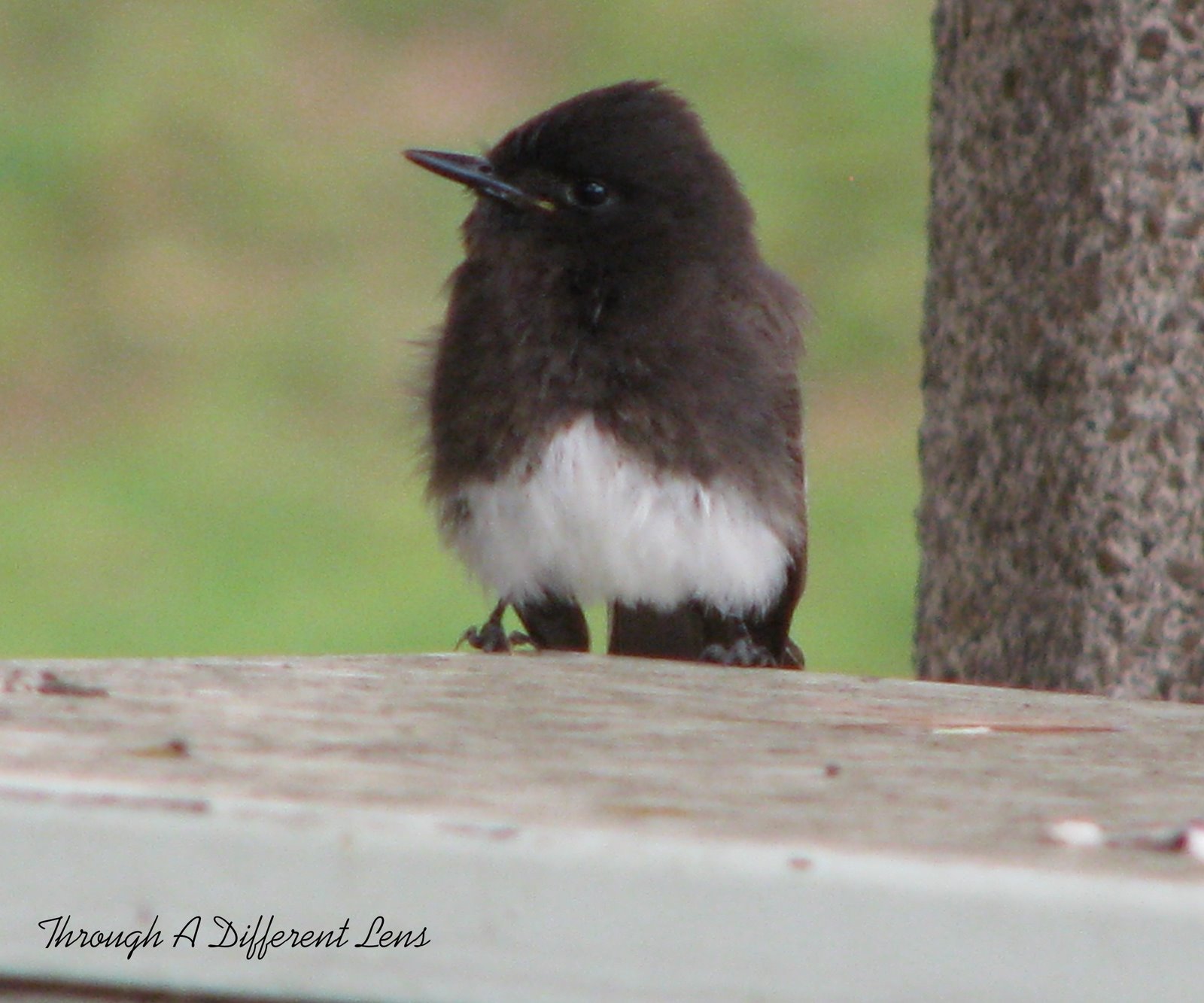 From top to bottom: Duckling safely nested in her mothers wings, Black phoebe, Ducklings looking up at me, and a gosling.